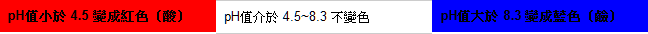 pH值低於 4.5 的酸性溶液變紅色後,再放入