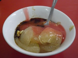 新竹的肉圓明顯較為透明,表皮 Q 度非常重要,看起來整顆肉圓晶瑩剔透的,比起其他地方的肉圓,新竹的肉圓算是比較小顆,內餡料則包含混合豬肉、紅糟、糖、醬油、青蔥等傳統食材,新竹城隍廟裡面的肉圓也頗有知名度。