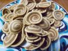 螺仔餅 (豬耳朵餅乾) 外觀像薄餅,一圈深色一圈淺色的相間花色是其特色。